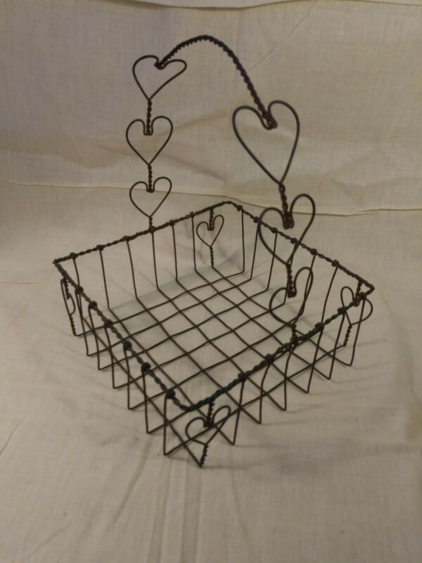 Title (ebay affiliate link): Antique 10" Twisted Metal Wire Hearts Basket Rustic Primitive Vintage Old