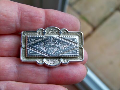ANTIQUE VICTORIAN LOZENGE STAMP JEWELLERY STERLING SILVER AESTHETIC BROOCH PIN