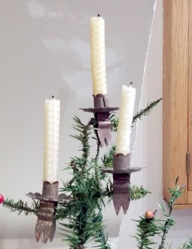 Title (ebay affiliate link): Three Six pinch-on Candle Holders, Drip Trays. Original Candles. late-1880s.