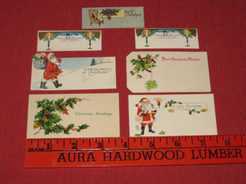 Title (ebay affiliate link): Antique Christmas Gift Tags Embossed Santa/Holly/Candles/Gifts EXC NOS