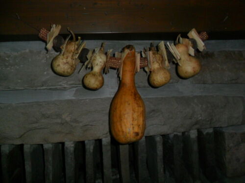 Primitive Gourd Garland, Early Look Everyday Homestead Decor w/ Cobs & Walnuts