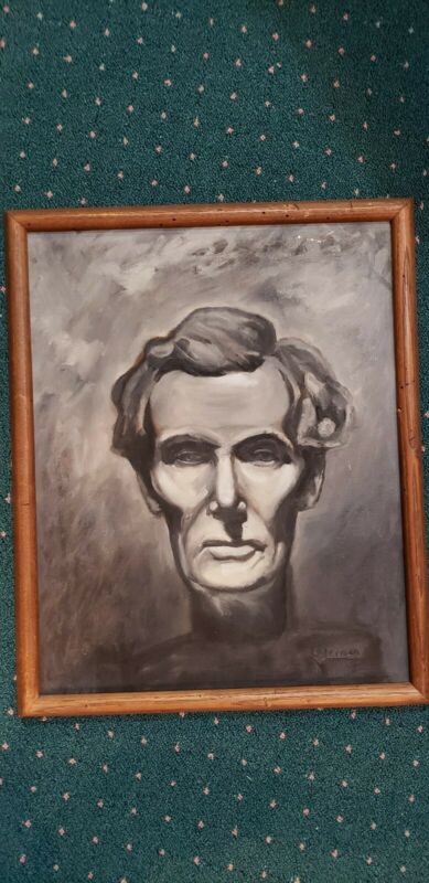 Title (ebay affiliate link): ABRAHAM LINCOLN Custom Hand Painted on Canvas Antique Frame