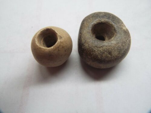 Title (ebay affiliate link): PRIMITIVE Pre-Columbian OR AMERICAN INDIAN Carved DRILLED STONE BEADS AF2