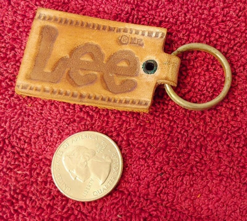 Title (ebay affiliate link): Vintage Key Chain Ring Leather Lee Denim Jeans Advertising Tag 2" Long