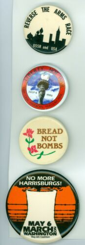 Title (ebay affiliate link): 4 Vtg 1980''s Anti-nuclear & Peace Protest Political Cause Pinback Buttons BREAD