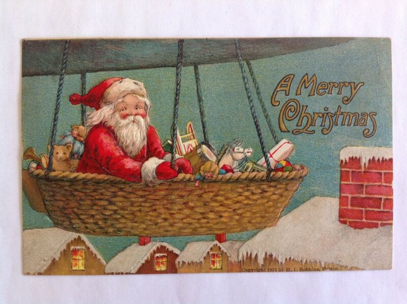 Title (ebay affiliate link): Christmas~1907~Santa Claus flying~dirigible basket~airship~pilot~toys~embossed