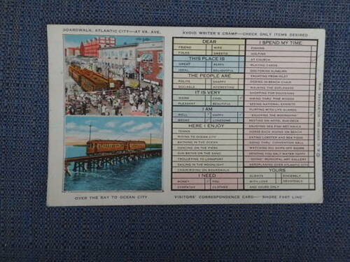 Vintage Postcard Lazy Person''s Correspondence Card Checklist Ocean Atlanta City