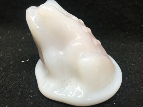 White pink milk glass Frog / Toad Figurine Paperweight opaque slag swirl marble