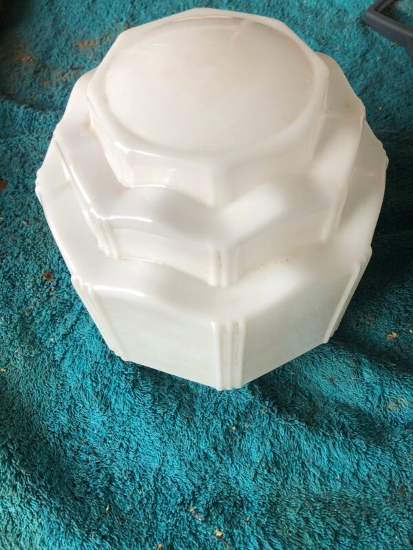 VTG. ART DECO SKYSCRAPER WEDDING CAKE WHITE MILK GLASS CEILING LIGHT LAMP SHADE