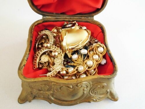 Title (ebay affiliate link): Art Deco Jewelry Box with Vintage Jewelry Lot*Rhinestones*Enamel*Milk Glass
