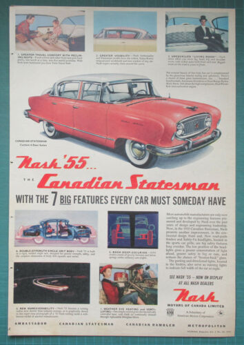Title (ebay affiliate link): 1955 Nash print ad Coral Red Canadian Statesman Custom 4-dr Sedan