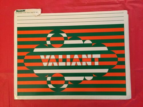 Title (ebay affiliate link): 1972 Plymouth "Valiant" Car Dealer Press Kit with Photos & News Release Sheets