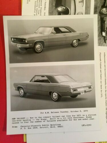 Title (ebay affiliate link): 1971 Plymouth "Duster" Car Dealer Press Kit Incl. Photos & News Release Sheets