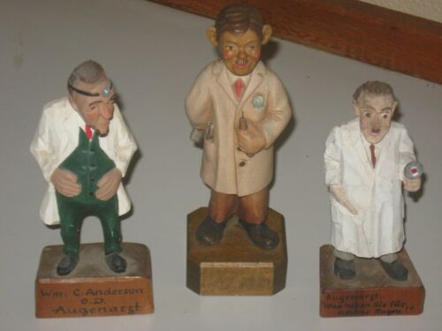 VINTAGE LOT OF 3 HAND CARVED WOODEN DOCTOR FIGURES FROM GERMANY