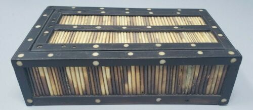 Rare Antique Ebony Rectangular Porcupine Quill Box Victorian Sliding Top Box