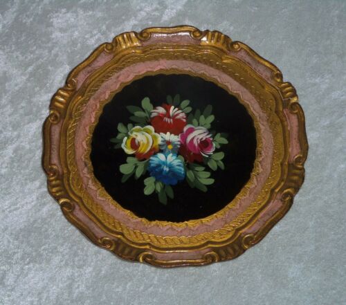 Title (ebay affiliate link): VTG Italian Floral Florentine Wood Plate Round Hand Made Tole Painted