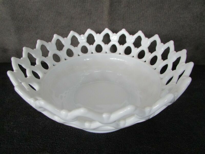 White Milk Glass Lace Edge Bowl E-72