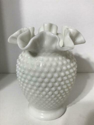 Title (ebay affiliate link): Vintage Fenton Double Ruffle Hobnail Milk Glass Rose Bowl Vase