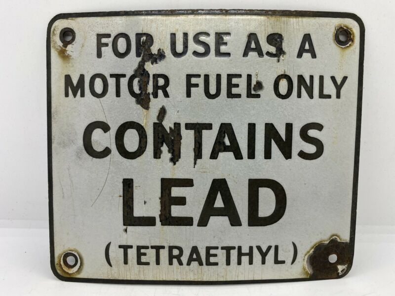 Old Service Station Vintage Black & White Contains Lead Porcelain Gas Pump Sign