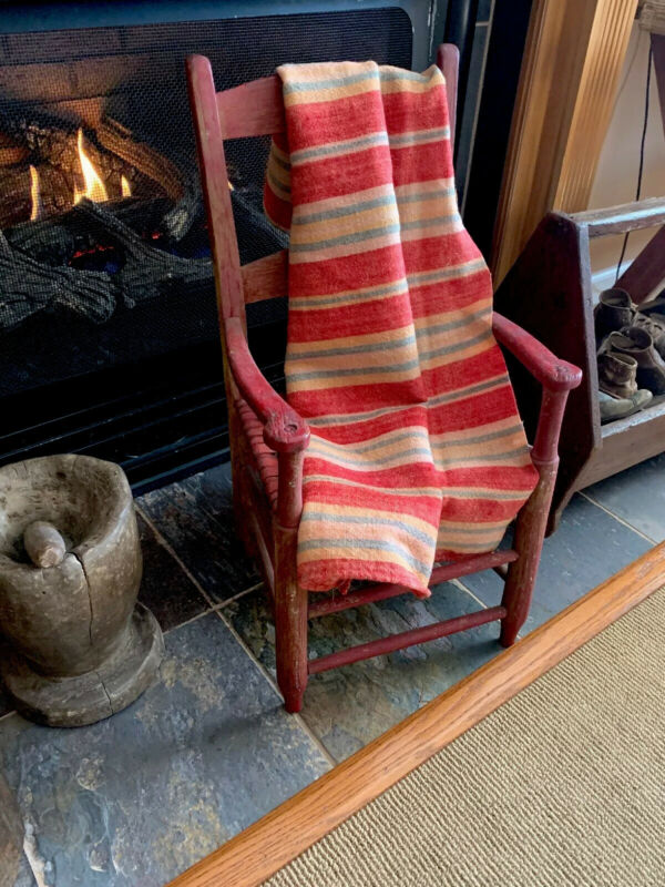 Title (ebay affiliate link): Early Lindsey Woolsey Table Mat Lil Chair Peg Rack Red Blue Textiles Primitive
