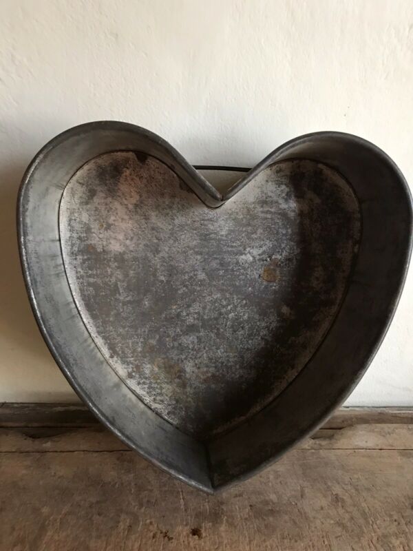 BIG OLD Tin Heart Form Mold Pan Patina AAFA
