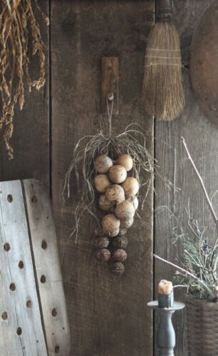 Title (ebay affiliate link): Primitive Homestead Early Look Gourd~Black Walnut & Raffia Garland w/Peg Hook