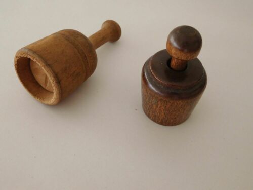 Lot of 2 Antique Primitive Wood Butter Mold Press Acorn Flower