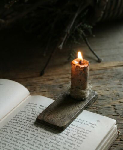 Title (ebay affiliate link): Primitive Homestead Early Lighting Inspired Tobacco Lath Wood Book Light w/Nub