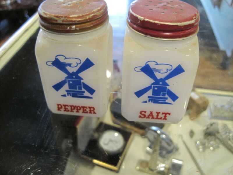 Title (ebay affiliate link): Vintage windmill milk glass salt & pepper shakers made in USA EXCELLENT GRAPHICS