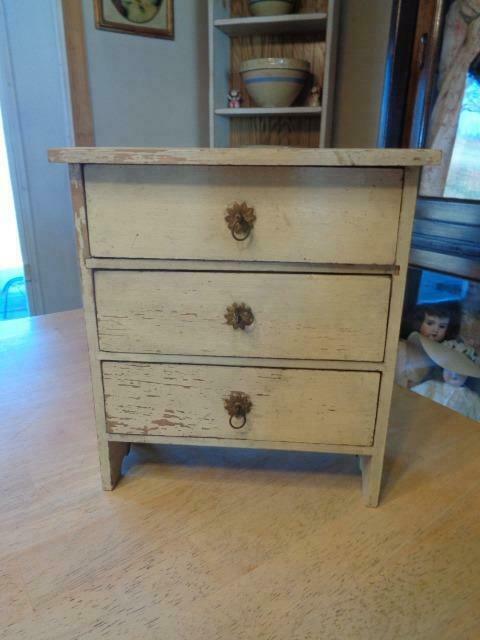 Sweet Old/Vintage Wooden Painted Doll Dresser~9.5" x8.5"x 3" 3/4"~Shabby Chic~