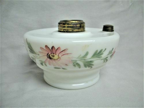 Old Milk Glass Oil Lamp Font Hand Painted Flowers Hanging Bracket Light Fixture