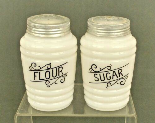 Title (ebay affiliate link): 2 Vintage Milkglass Shakers - Flour & Sugar - Kitchen Glassware Collectible