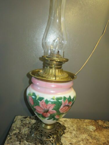 Title (ebay affiliate link): ANTIQUE MILK GLASS HAND PAINTED GWTW OIL LAMP B&H MILLER LAMP PARTS BRASS FONT