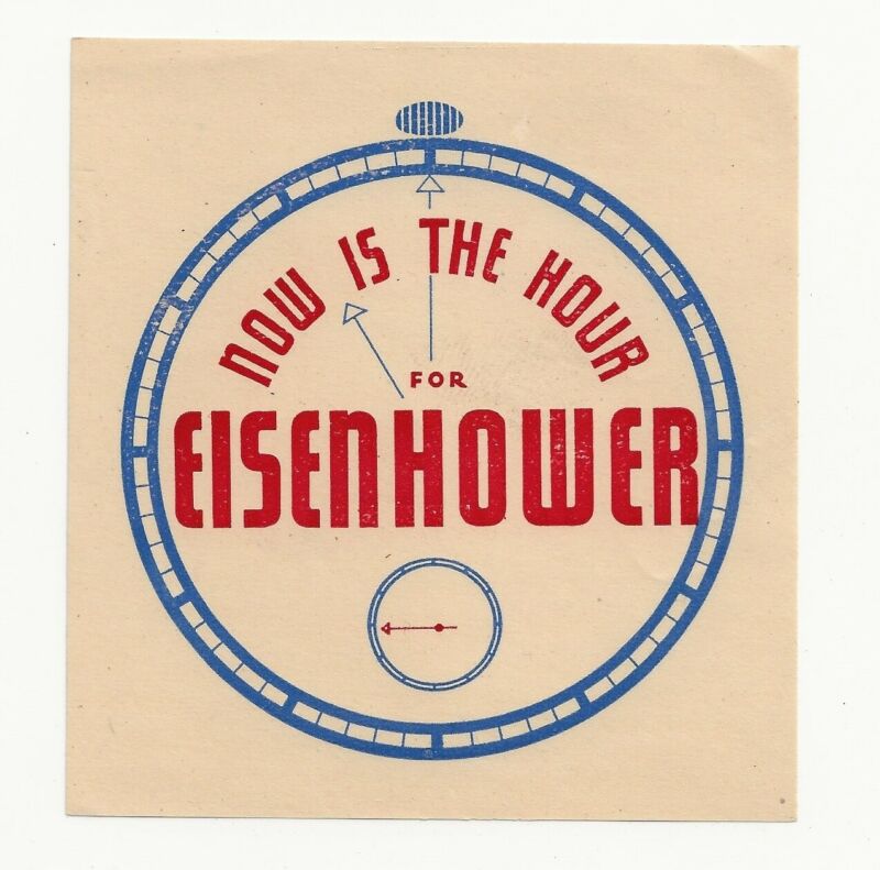 Vint Unused 1952 Or1956 Political Decal NOW IS THE HOUR FOR EISENHOWER Election