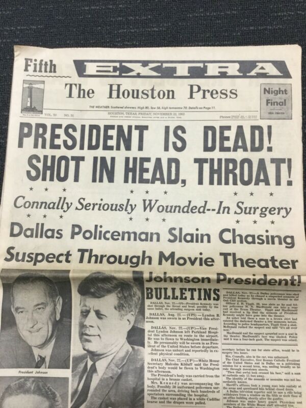 Title (ebay affiliate link): President Kennedy Assassination - 1963 HOUSTON, TEXAS Newspaper