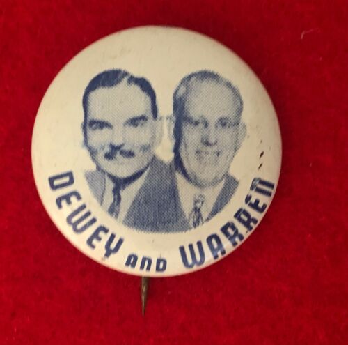 Title (ebay affiliate link): Vintage political pinback: ''Dewey and Warren'' jugate, 1"