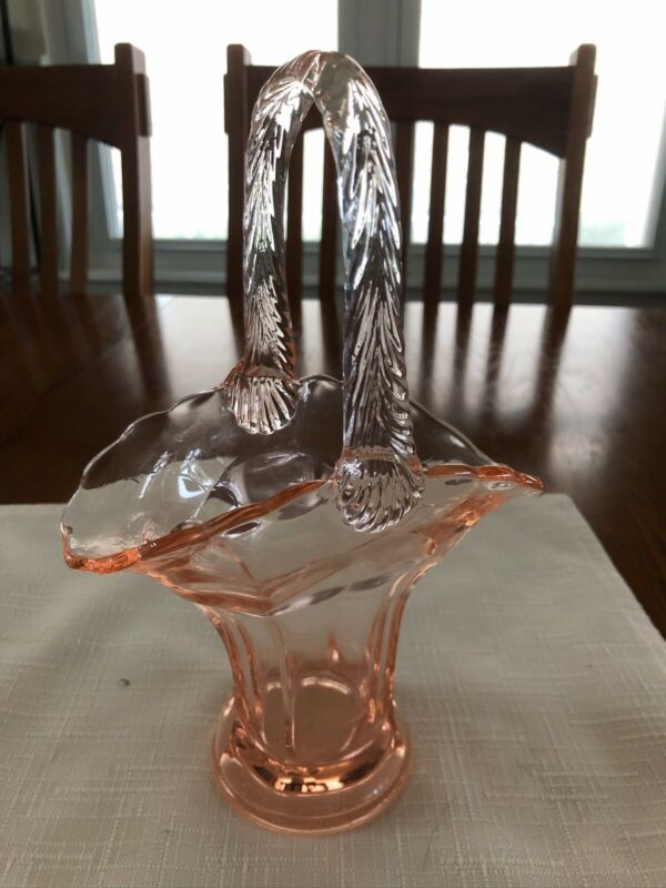 Pink Depression Small Rope Handled Glass Basket