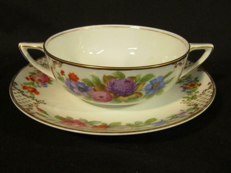SET 6 LOVELY ROSENTHALE "DRESDEN" CREAM SOUP BOWLS & UNDER PLATES 1924