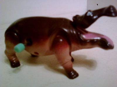 Plastic wind up , walking, mouth moving hippo toy
