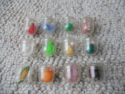 12 1950-60's GUM BALL TOYS-CHARMS IN ORIGINAL PACKAGE