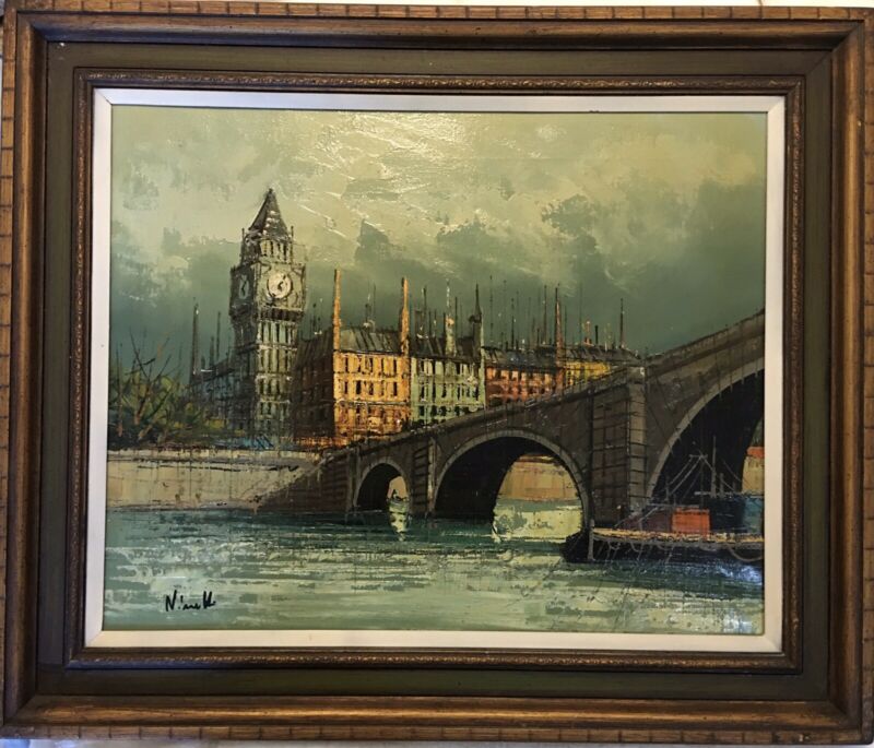 Title (ebay affiliate link): Vintage Signed NINETTI 26x22 Framed Matted ORIGINAL painting Bridge Clock Paris