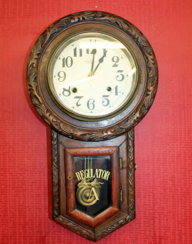 Title (ebay affiliate link): Antique Wall Clock Regulator American Clock TRADEMARK