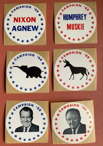 Title (ebay affiliate link): Nixon & Humphrey 1968 lot of Political stickers six