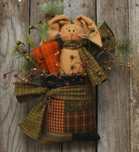 Title (ebay affiliate link): HANDMADE PRIMITIVE SPRING BUNNY RABBIT DOLL QUILTED PATCHWORK GREETER CARROTS