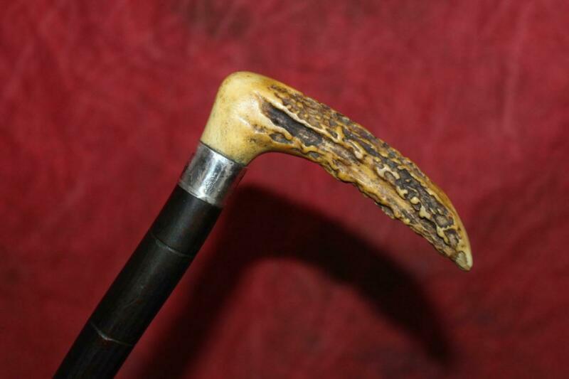 Title (ebay affiliate link): Wonderful Vintage Stag Handle Cane W/Sterling Collar, Gold Tip & Bamboo Shaft