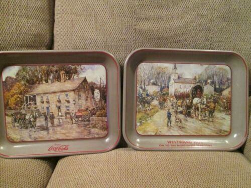 Title (ebay affiliate link): 2 Vtg 1980s Coca Cola Coke Metal Trays; "Westward Ho" "Headley Inn".Leslie Cope