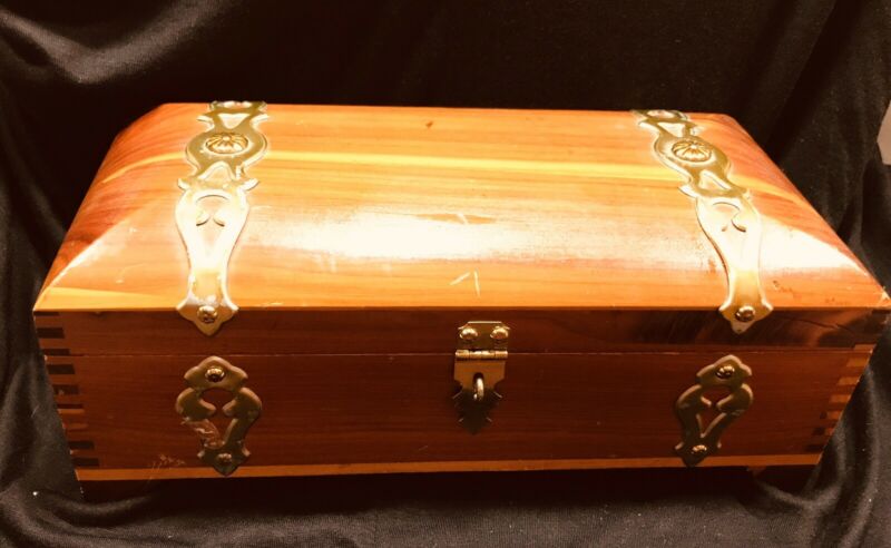 Title (ebay affiliate link): Vintage Cedar Wood Trinket Storage Box Brass Hardware