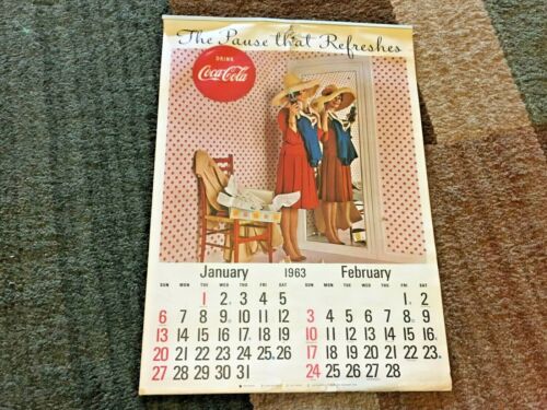 Title (ebay affiliate link): 90) 1963 Coca Cola Calendar Soda Fountain Store Display Sign COKE!~~