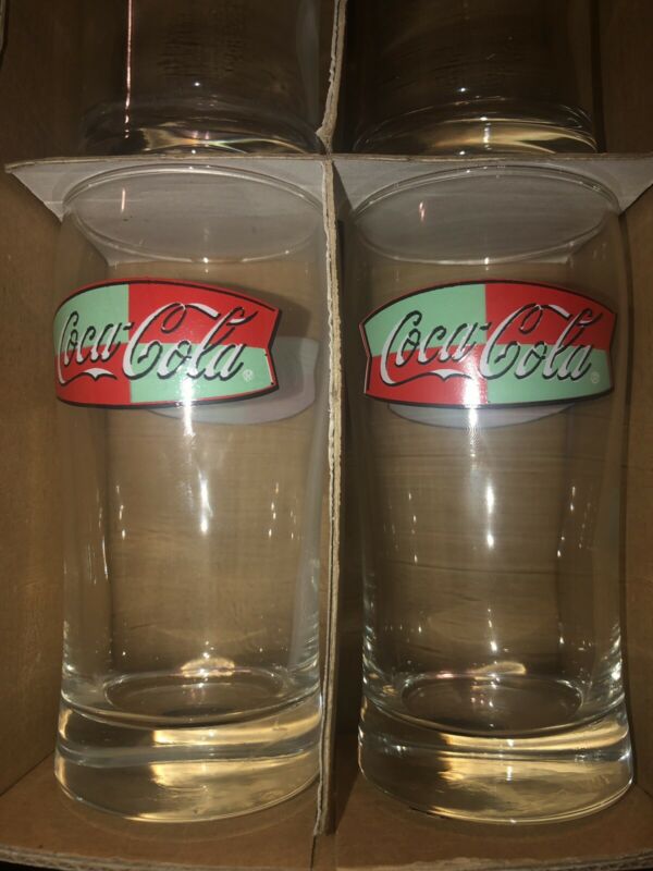 Title (ebay affiliate link): 4 Retro Coca Cola Coke 8 oz Tumblers Glasses in Metal Vending Machine Tin 1999
