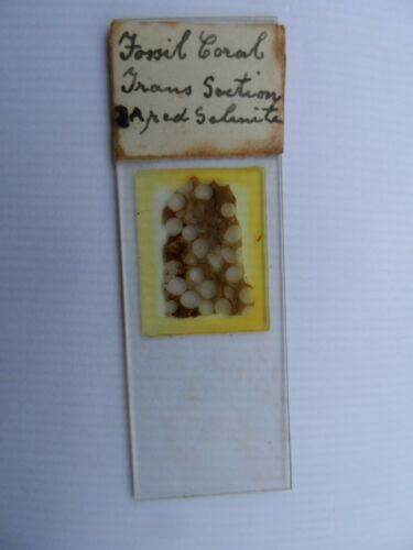 Title (ebay affiliate link): Antique Microscope Slide Unknown Preparer Fossil Coral Trans Section Red ???